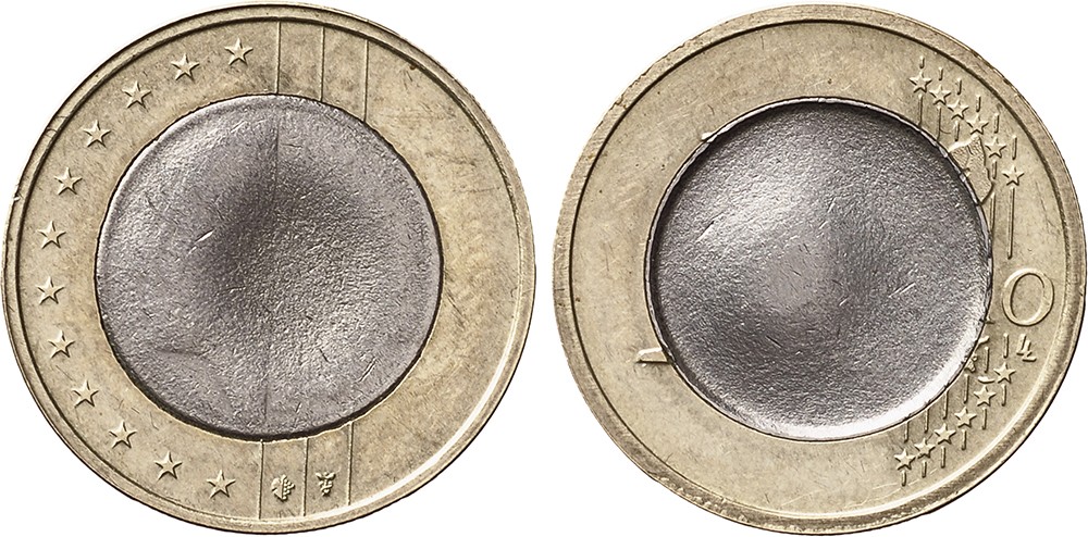 1 Euro 2001 (mmt Druiventros). Kern vrijwel blanco, slechts een vaag portret van Koningin Beatrix.