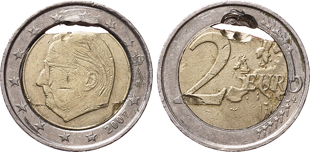 2 Euro 2007. Hap uit de kern en machineafdruk.