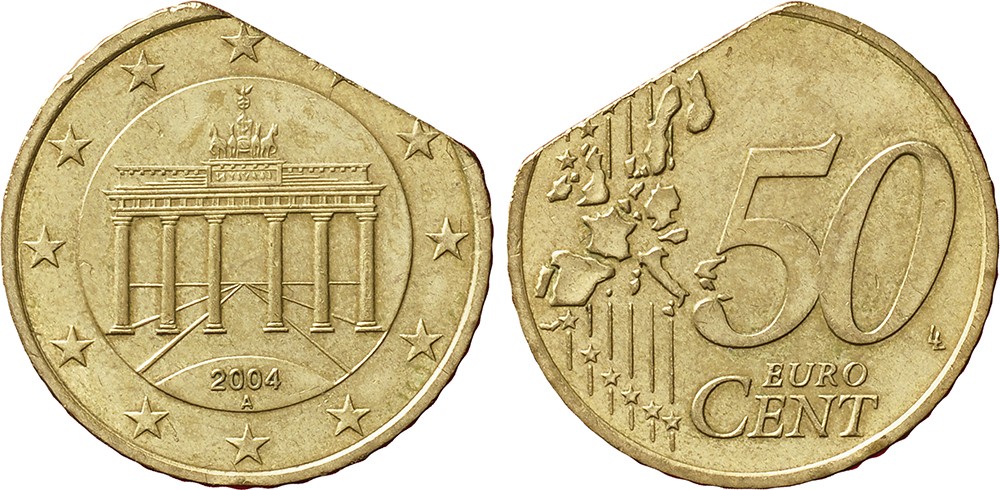 50 Cent 2004A. Strookeinde waardoor 20% van de munt ontbreekt!