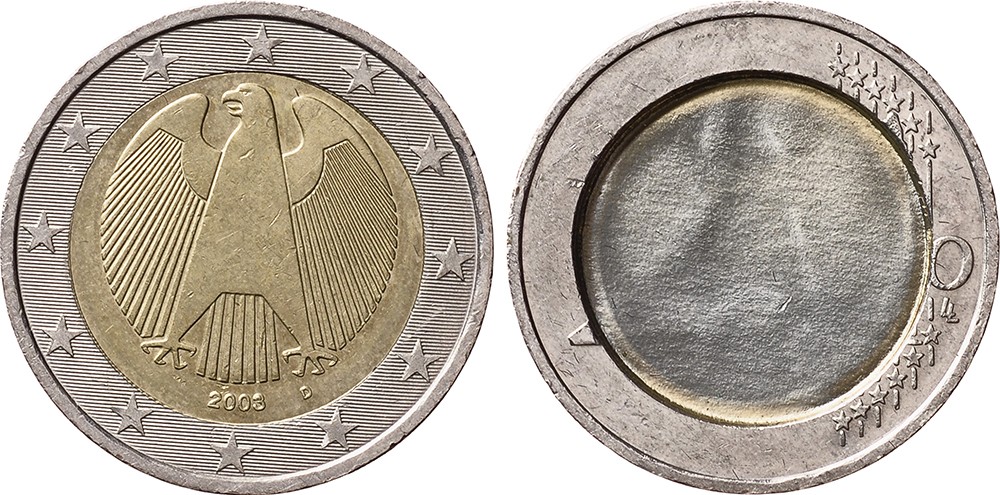 2 Euro 2003D. 1 Zijde van de kern ontbreekt. LEUK!