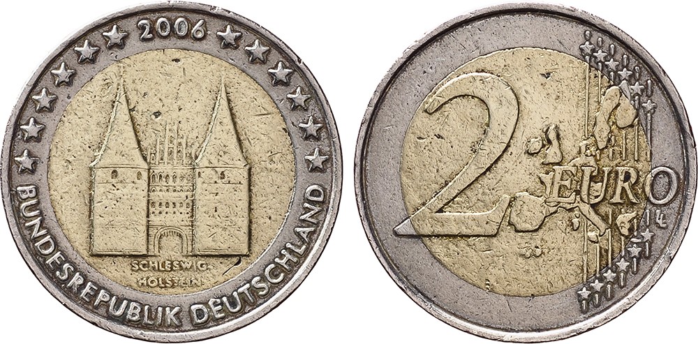 2 Euro 2006D. Holstentor. Zwak geslagen. 8,32 gr.