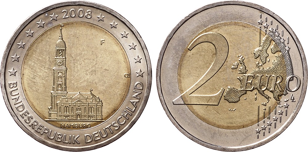 2 Euro 2008F. Michaelis. Oude i.p.v. nieuwe kaart.