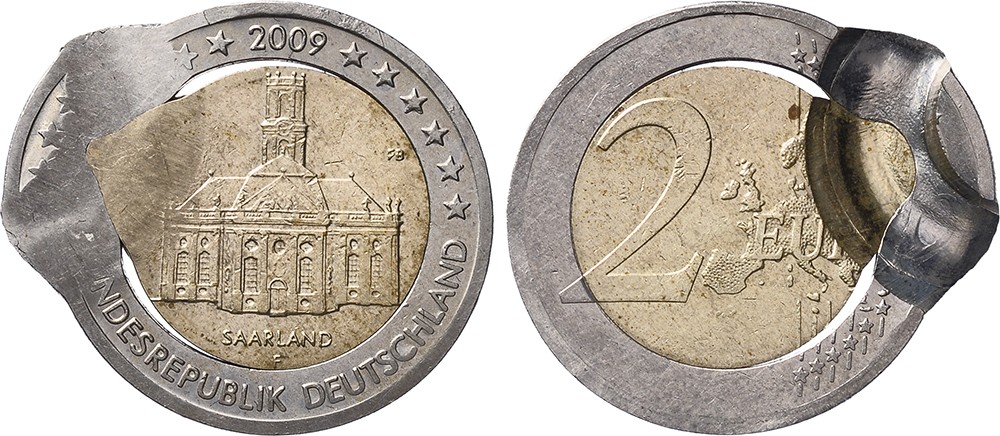 2 Euro 2009F. Saarland. 2 Hapjes uit de kern en volledige dubbelslag met flink petje! Zeer bijzonder!