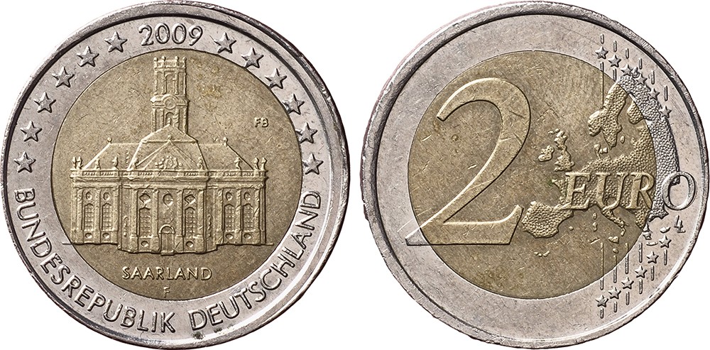 2 Euro 2009F. Saarland. Decentrisch geslagen.