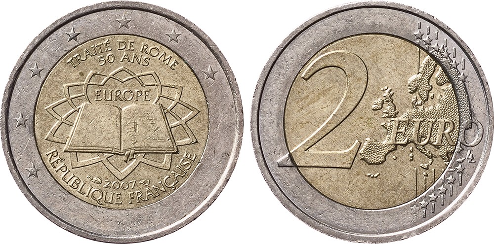 2 Euro 2007. Verdrag van Rome. Gedeeltelijk blanco ring, waardoor sterren ontbreken.Leuk!