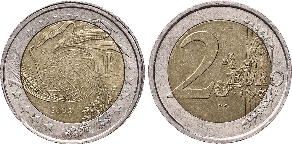 2 Euro 2004. Wereld Voedsel Programma. Randschrift 50% blanco.
