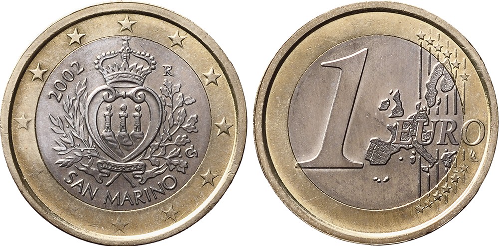1 Euro 2002. Zwak geslagen waardoor 2 sterren vrijwel ontbreken.