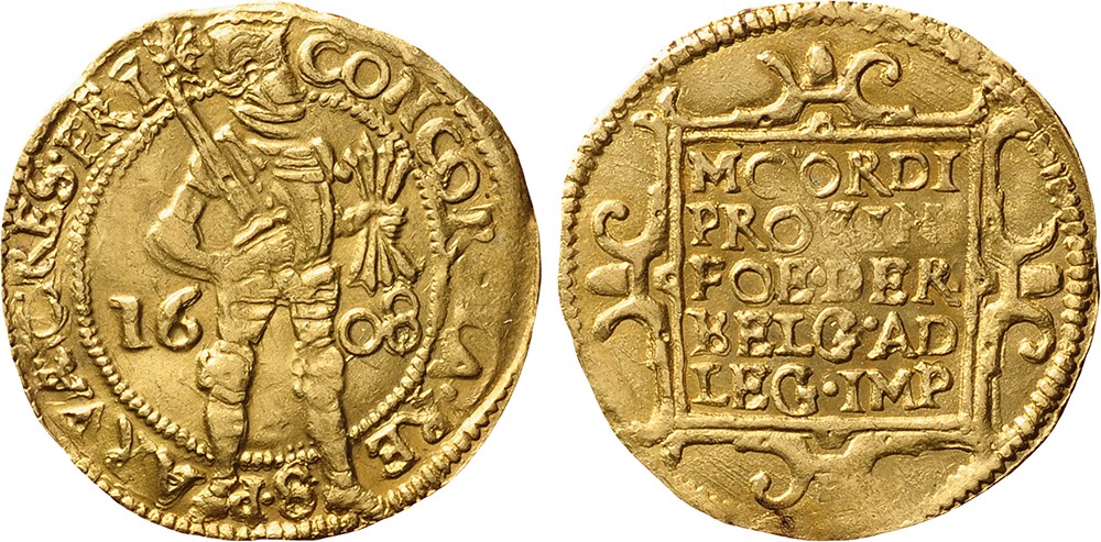 Gouden dukaat 1608/07. Cnm. 2.16.14; D.1013. Zeer fraai/prachtig.