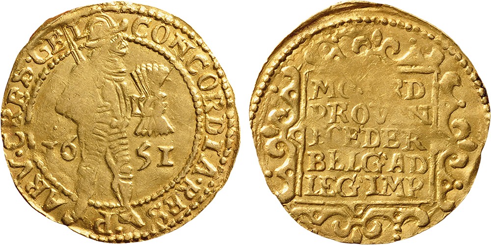 Gouden dukaat 1651. Cnm. 2.17.77; D.649. Zeer fraai+.