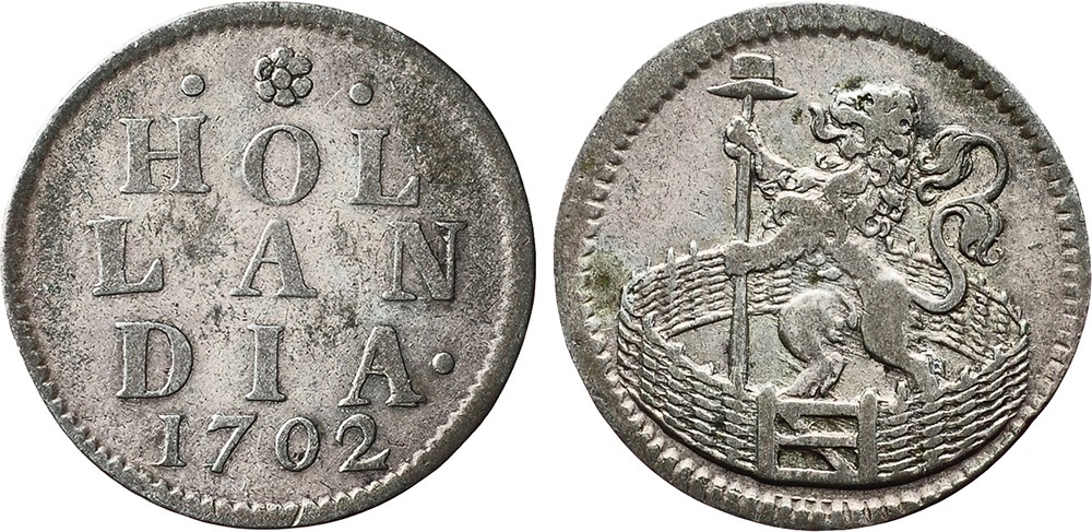 Duit zilver 1702. Cnm. 2.28.126. Ca. zeer fraai.