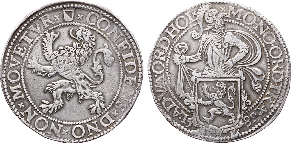 Leeuwendaalder op Hollandse voet 1589. Cnm. 2.43.56; D.841. Zeer fraai/prachtig. Ex. Karel de Geus 26/357.