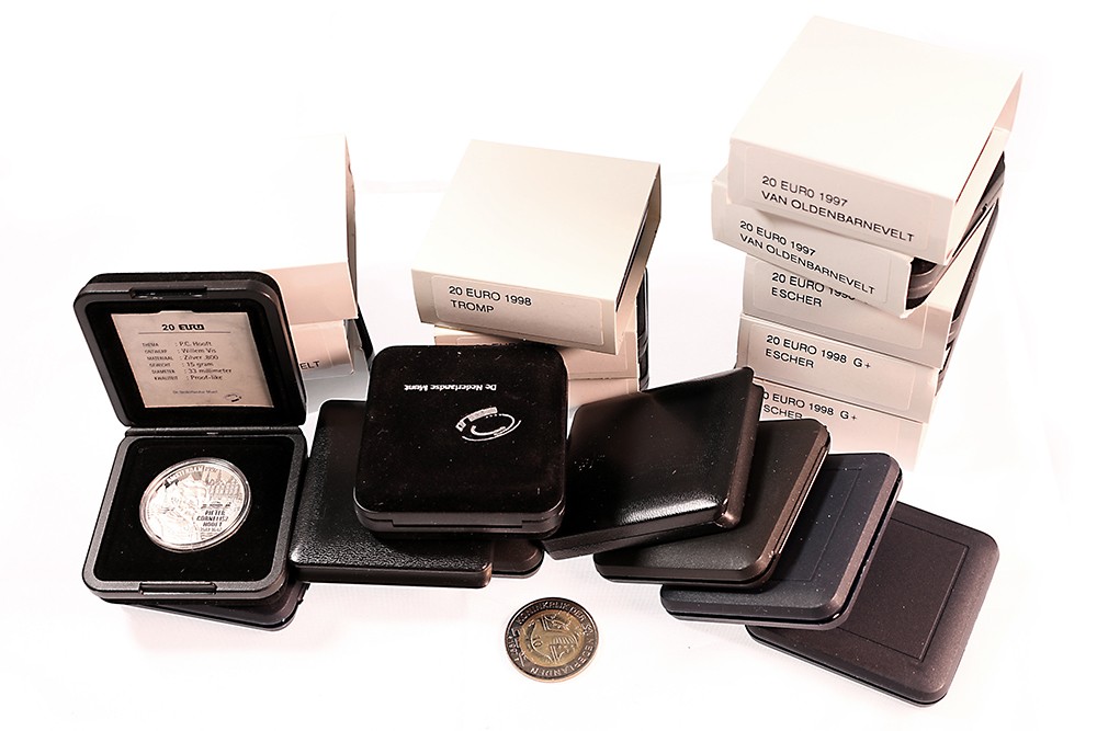 Euro voorlopers door KNM. 10 euro(8), 20 euro zilver(13).