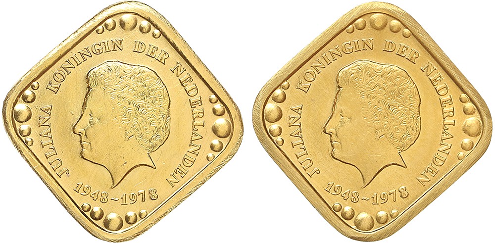 Penning Juliana naar model vierkante stuiver. Goud. 2 ex.