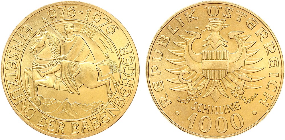 Austria. 1000 Schilling gold 1976. UNC.