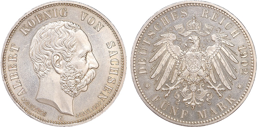 Saxony-Albertin. 5 Mark 1902E. KM 1256. UNC.