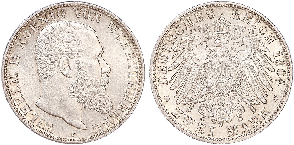 Württemberg. 2 Mark 1904F. KM 631. UNC.