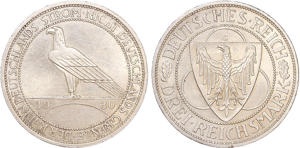 Weimar Republic. 3 Mark 1930G. KM 70. A.UNC.