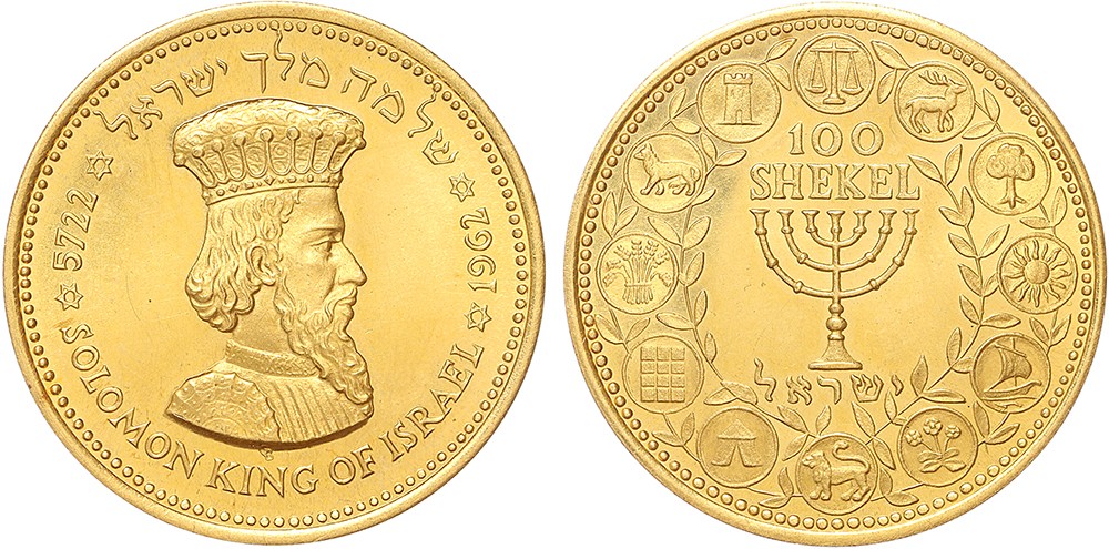 Israël. 100 Shekel gold 1962. Solomon King of Israël. UNC.