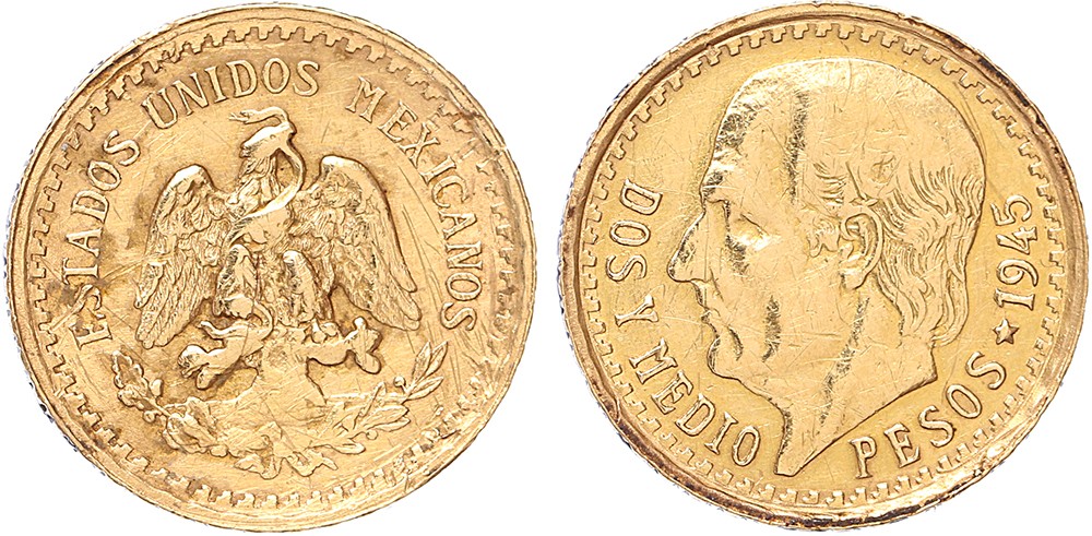 Mexico. 2 1/2 Pesos 1945. Fine.