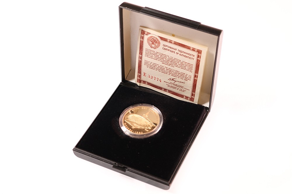 Russia. Olympics 1979. 100 Roubles gold. Velodrome Building. Proof.