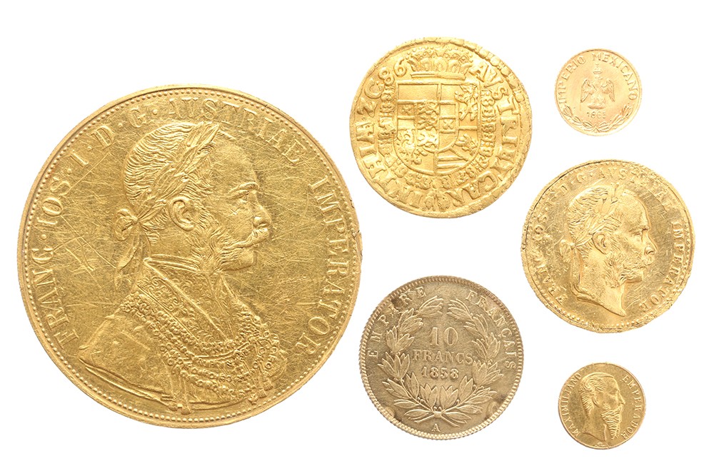 World. Small lot gold coins including Austrian gold ducat 1586. All damaged. 24,93 gr.