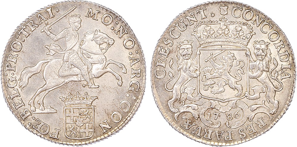 Halve zilveren rijder 1786. FDC. Mooie melkwitte kleur en stempelglans.