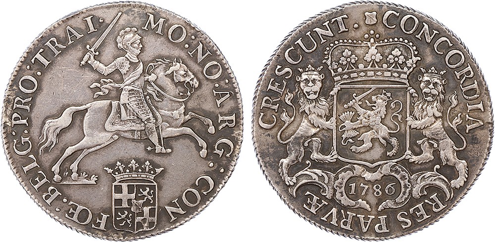 Zilveren rijder 1786. Cnm. 2.43.107. Montagespoor, overigens zeer fraai.
