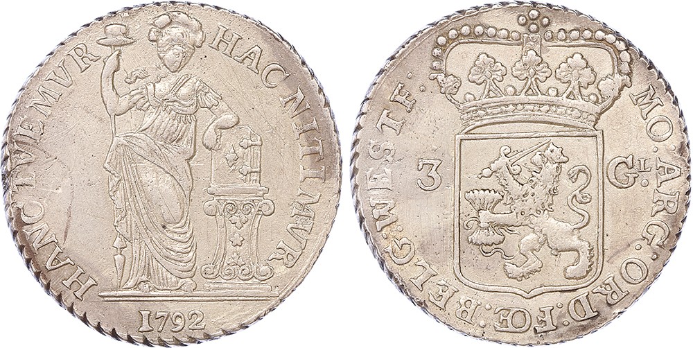 3 Gulden 1792. Cnm. 2.46.55. Ca. zeer fraai.