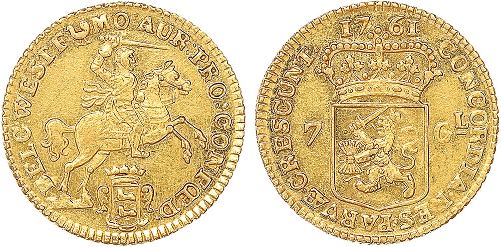 Halve gouden rijder 1761. Cnm. 2.46.4. Prachtig.