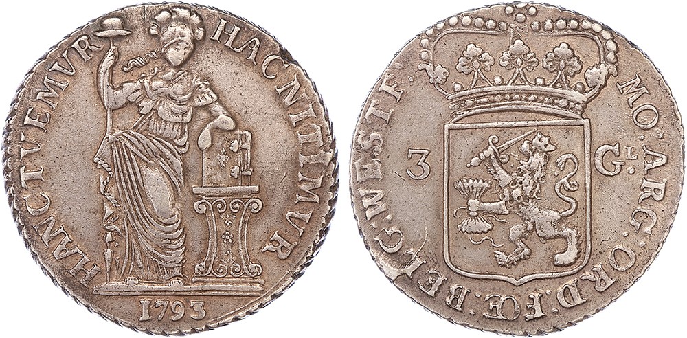 3 Gulden 1793/1785. Cnm. 2.46.55. Zeer fraai.