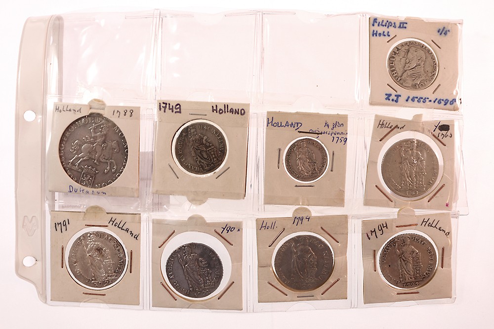 Holland. Lotje zilveren munten w.o. zilveren rijder 1788 en 5x 1 gulden 1763/1794. 9 ex.