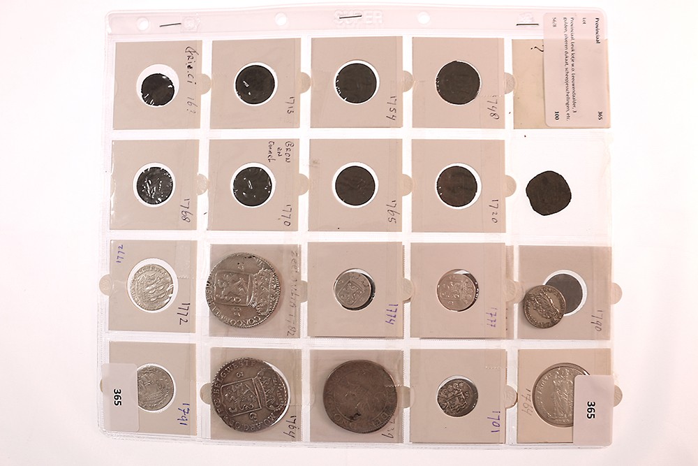 Provinciaal. Leuk lotje w.o. Leeuwendaalder, 3 gulden, zilveren dukaat, scheepjesschellingen, etc.