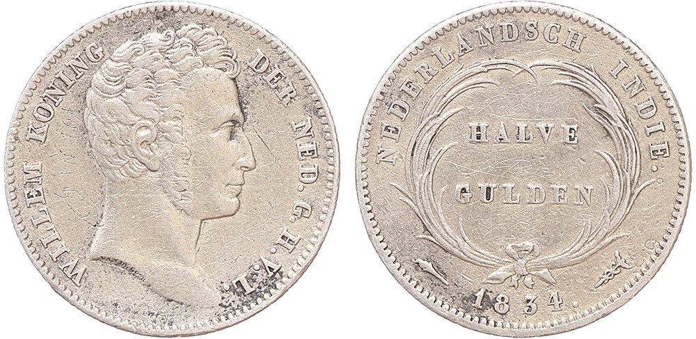 1/2 Gulden 1834/27. Ca. zeer fraai.