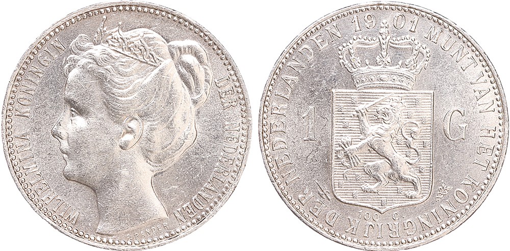 1 Gulden 1901. UNC. Mooie melkwitte kleur.