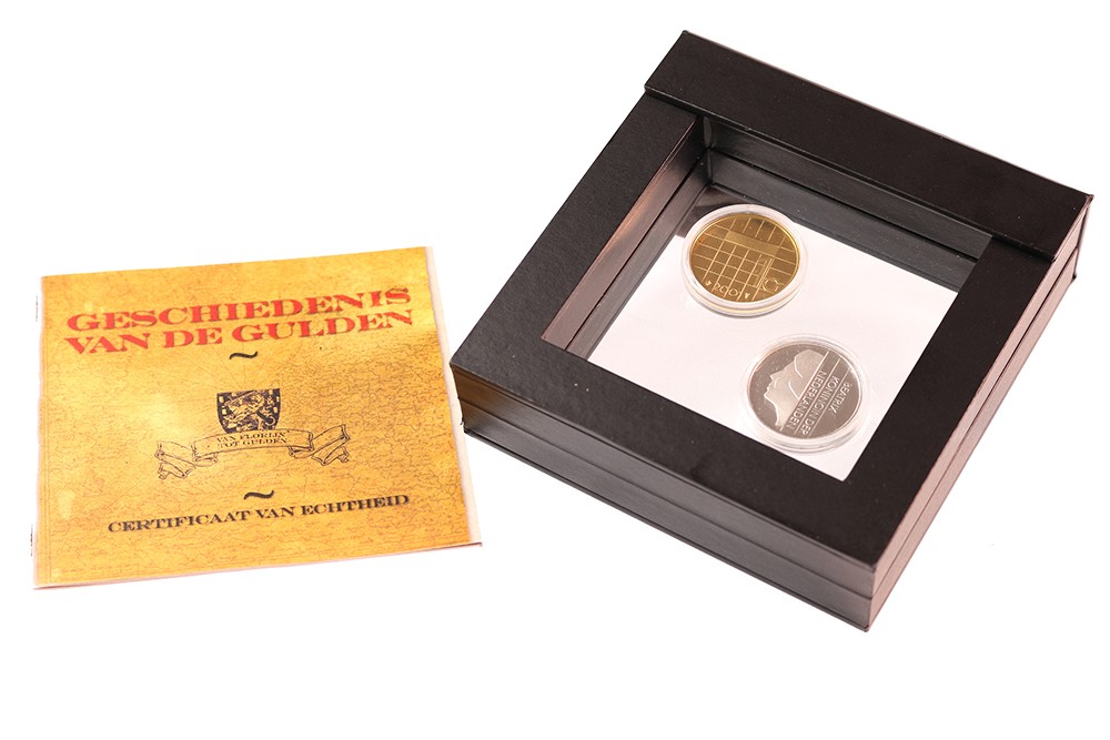 1 Gulden goud en 1 gulden zilver 2001. Proof.
