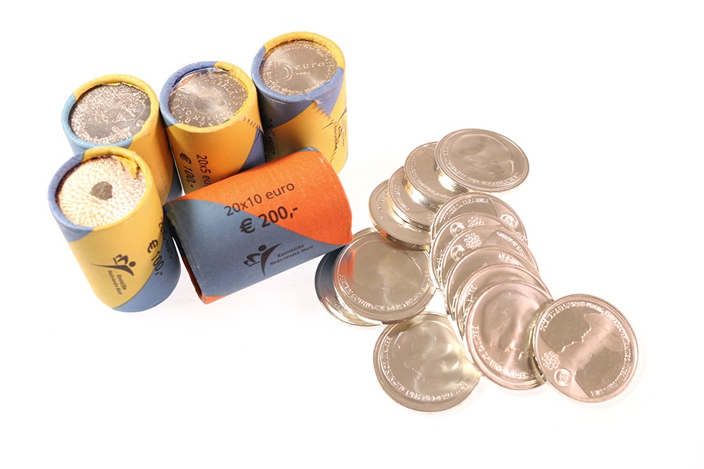 Herdenkingsmunten 5 en 10 euro w.o. zilver. Vnl. in complete rollen.