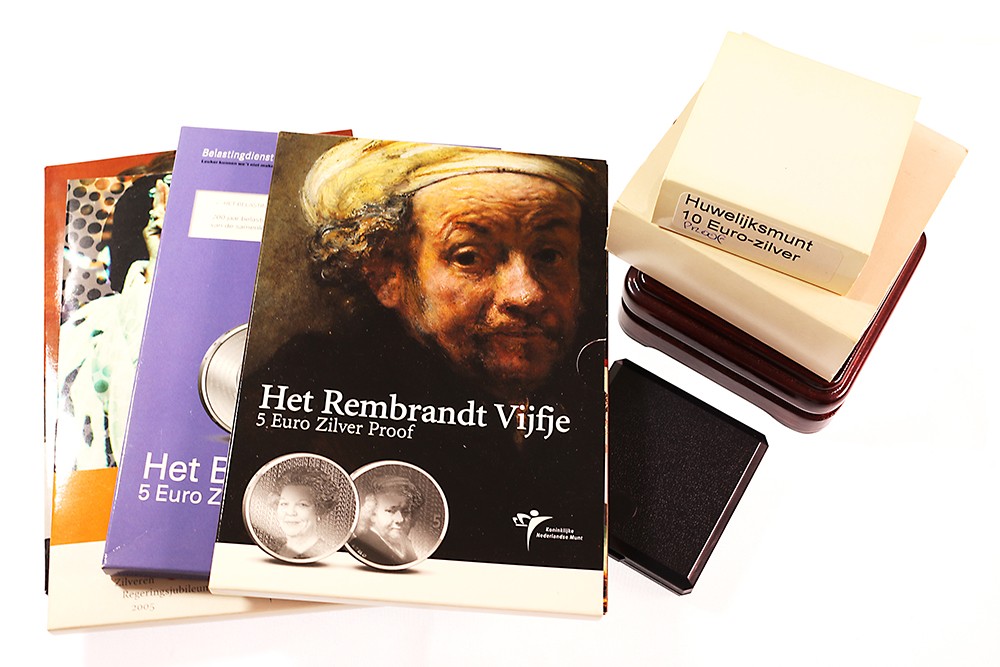 Herdenkingsmunten 5 en 10 euro zilver. Proof. 8 ex.