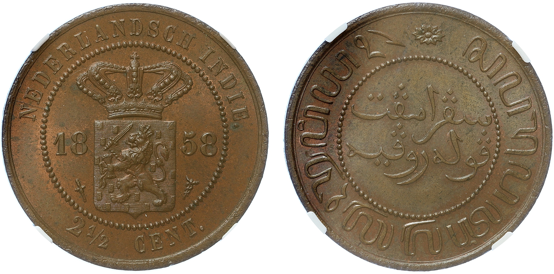 Nederlands Indië. 2 1/2 Cent 1858. MS 64 BN.