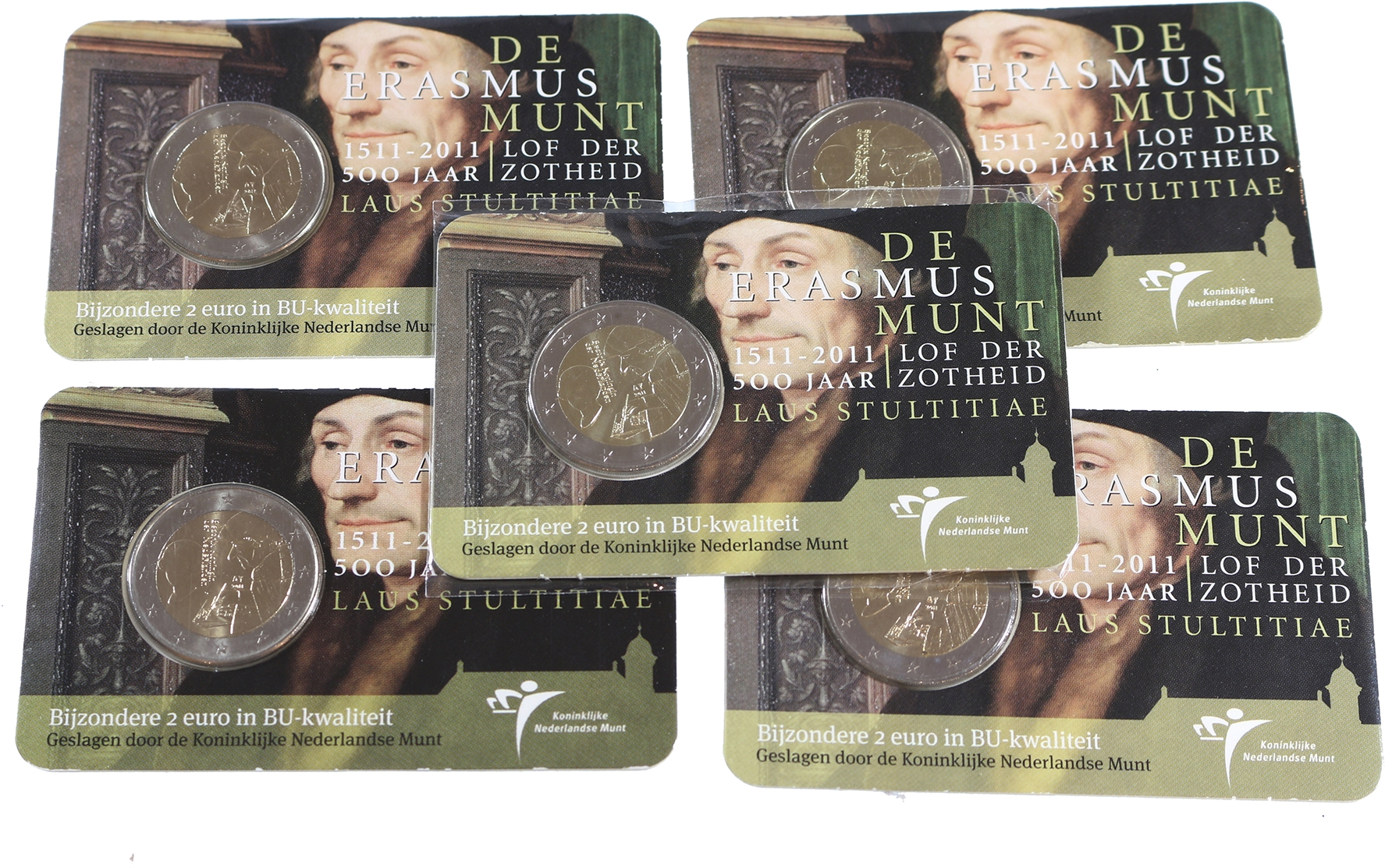 Netherlands. 2 Euro 2011 Erasmus in coincard. 5 ex.