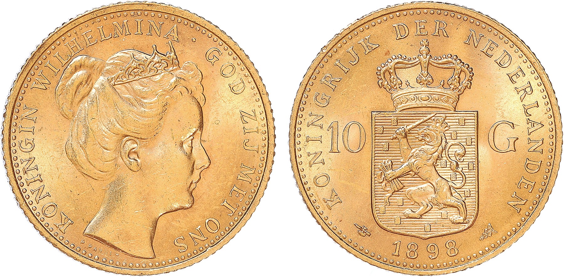 Netherlands. 10 Gulden goud 1898b. Zonder punt tussen P Pander. Sch.744. FDC.