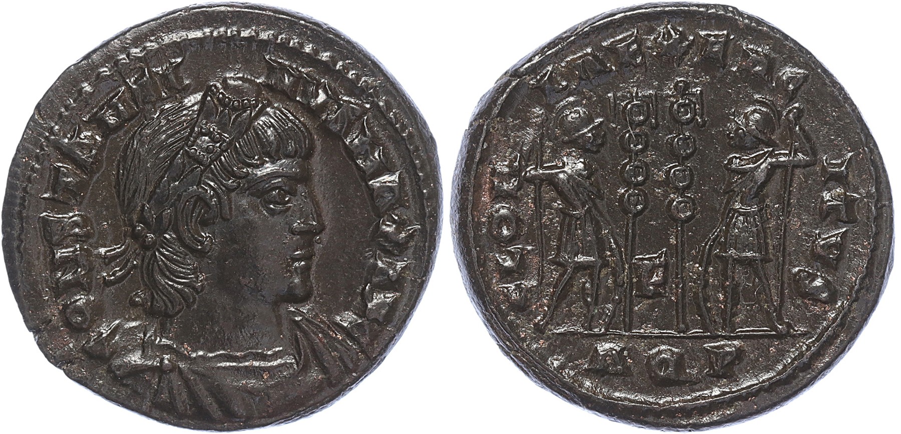 Constantinus I (AD 307-337) - AE 3/4 (Aquileia AD 334/5, 2,54g). RIC 118. XF, lovely smooth dark patina. Ex. Laurens Schulman