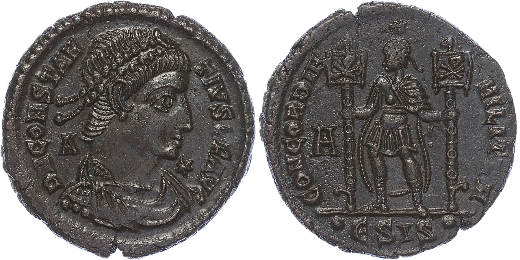 Constantius II (AD 337-361) - AE Centenionalis (Siscia AD 350, 5,22g). Coh. 3; RIC 273. R - XF/a.XF. Ex. Henzen L 175 - 683