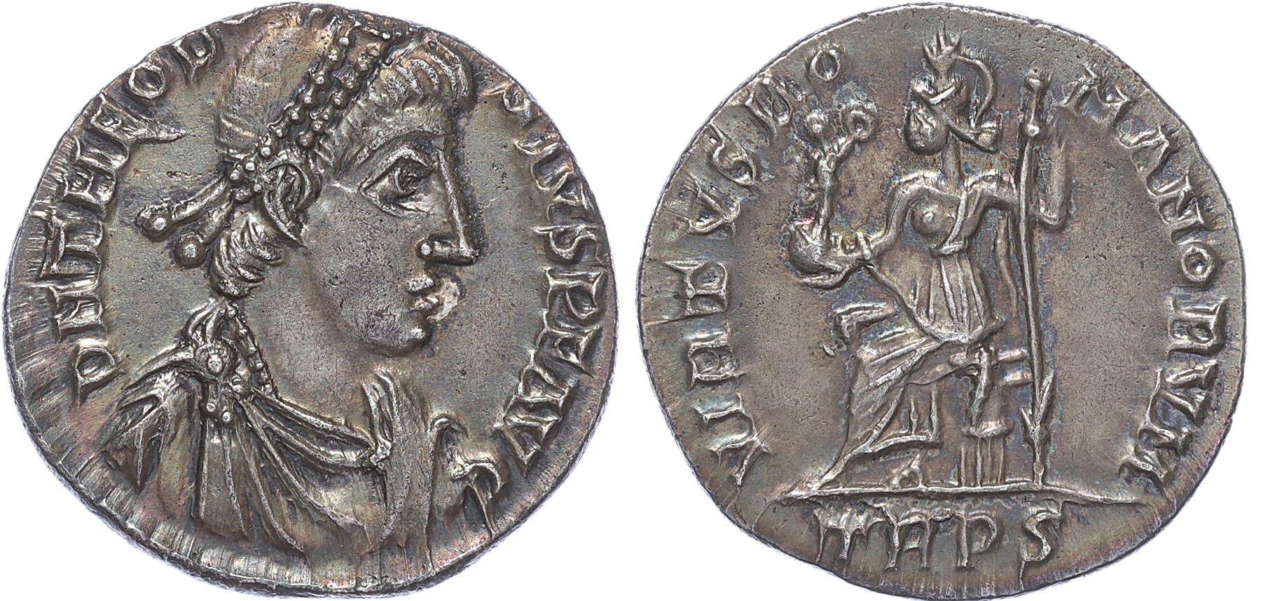 Theodosius I (AD 379-395) - AR Siliqua (Treveri AD 388 - 392, 1,84g). Coh. 57; RIC 94b. XF. Ex. Henzen L 164/690