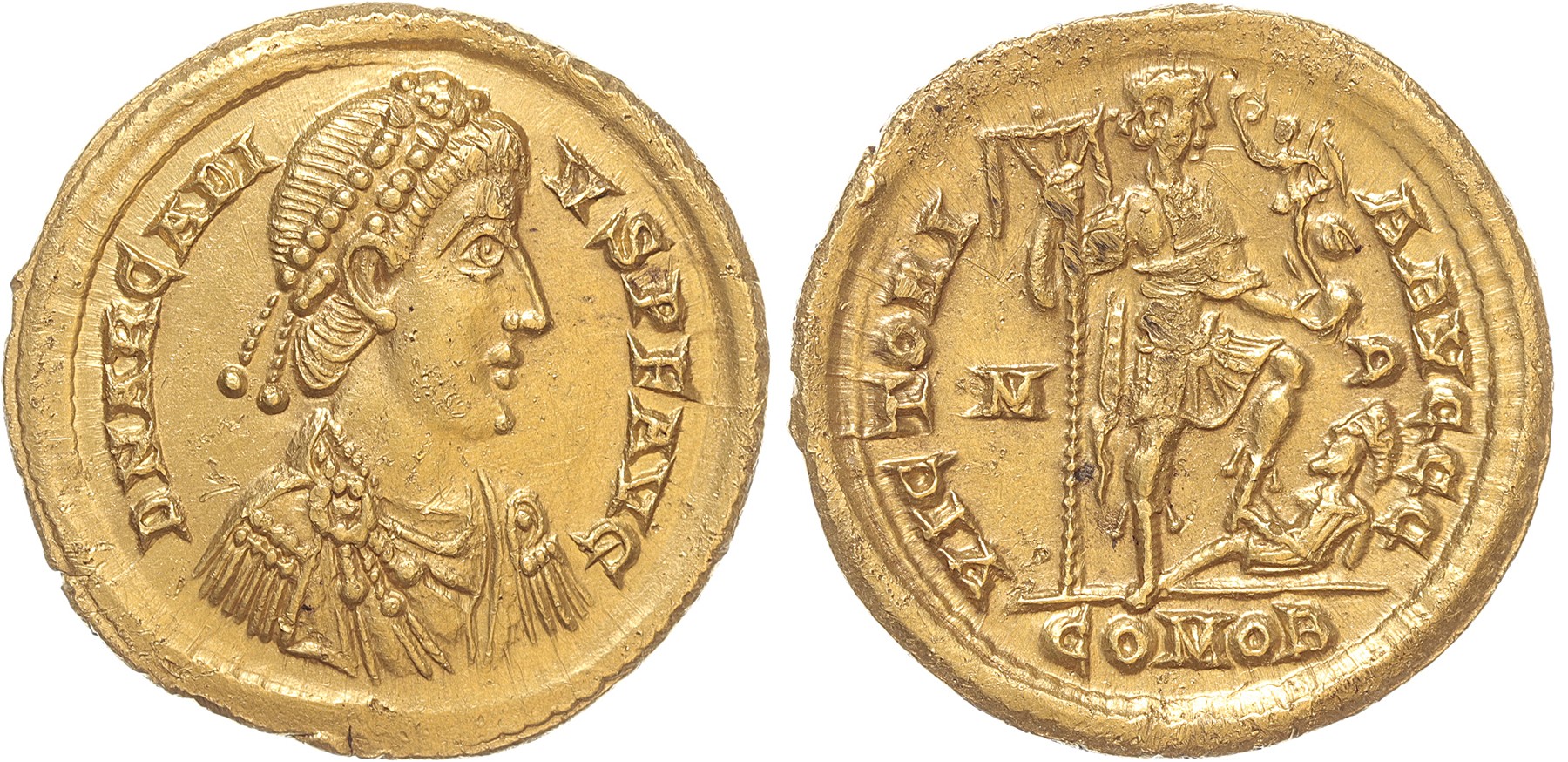 Arcadius (AD 383-408) - AV Solidus (Mediolanum AD 383 - 408, 4,5g). RIC 1205. XF. Ex. Grün A 2006-05/71