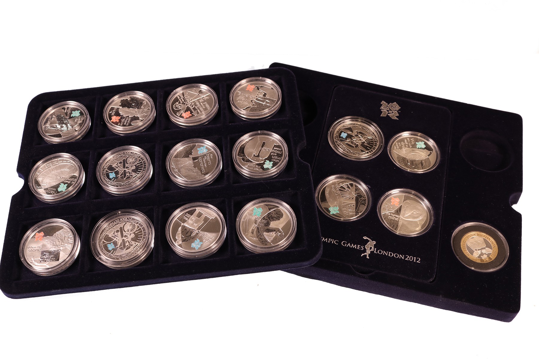 Great Britain. Olympics London 2012. 5 Pounds silver proof (16), 2 pounds bimetal. Total 17 pcs.