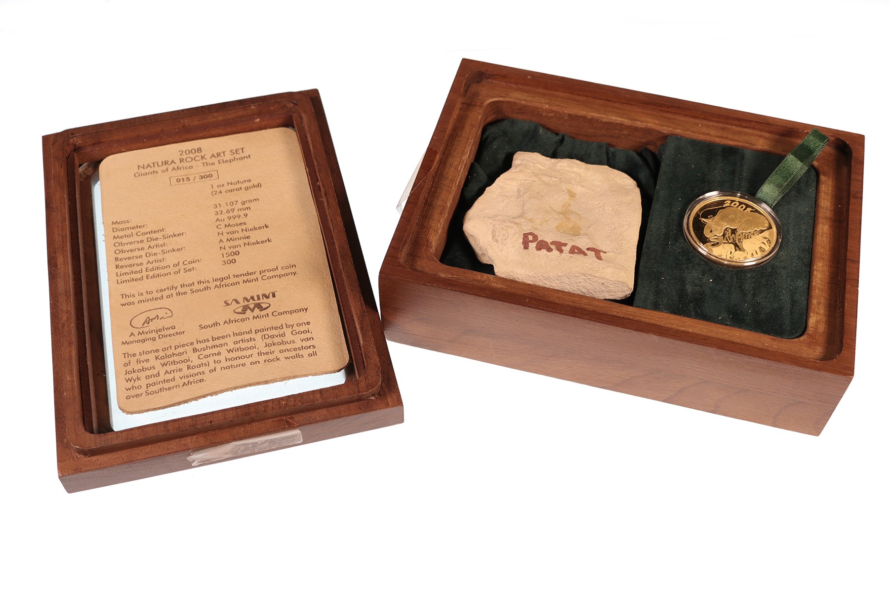 South Africa. 100 Rand gold 2008. Natura. Lovely box with leather certificate, # 015/300. Mintage 300 pcs.