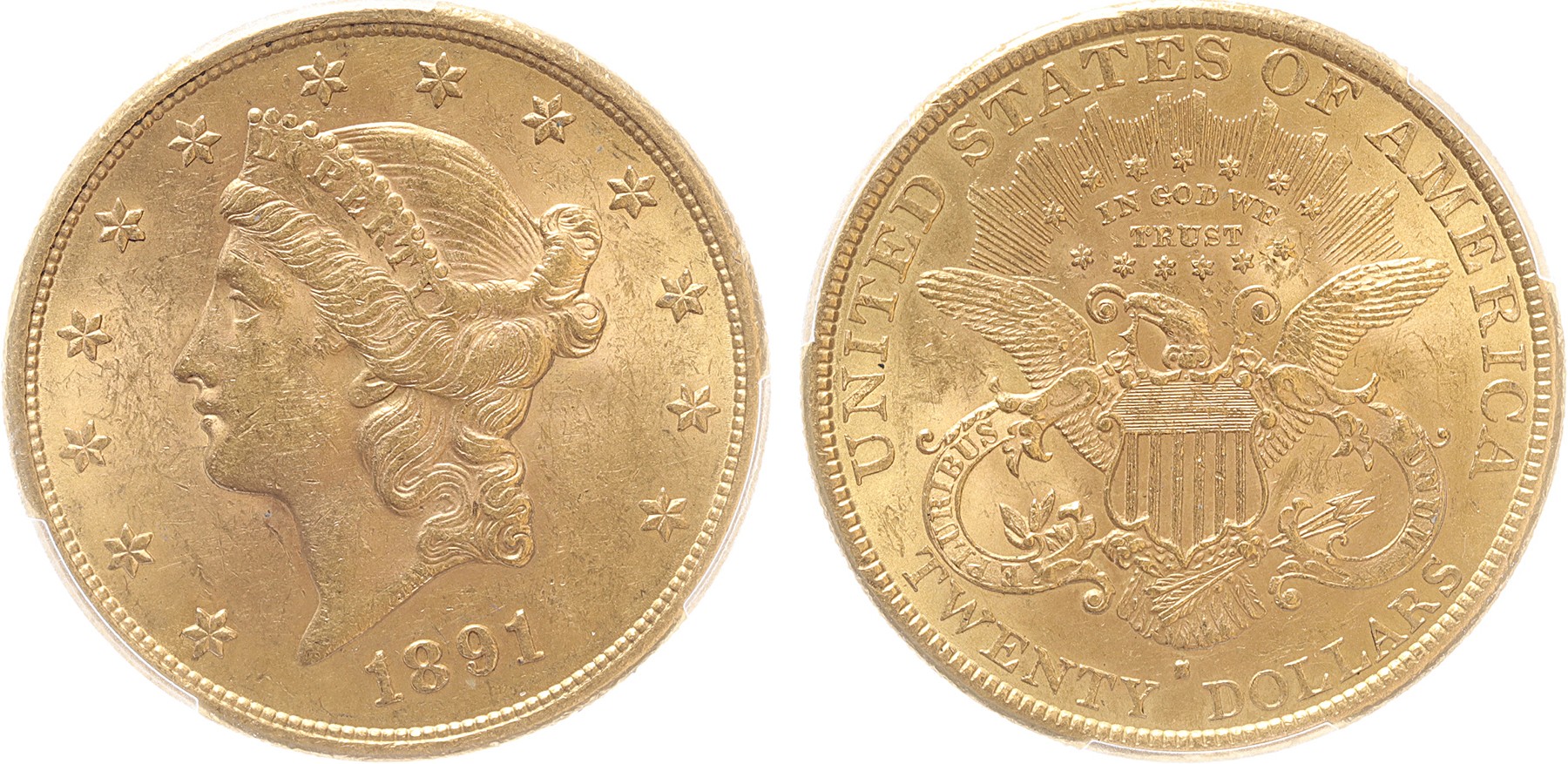USA. 20 Dollars gold 1891s. PCGS MS 62.