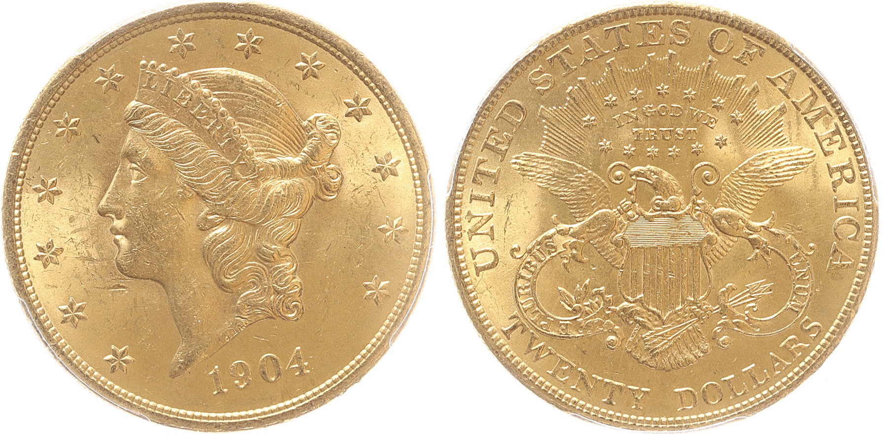 USA. 20 Dollars gold 1904. PCGS MS 63.