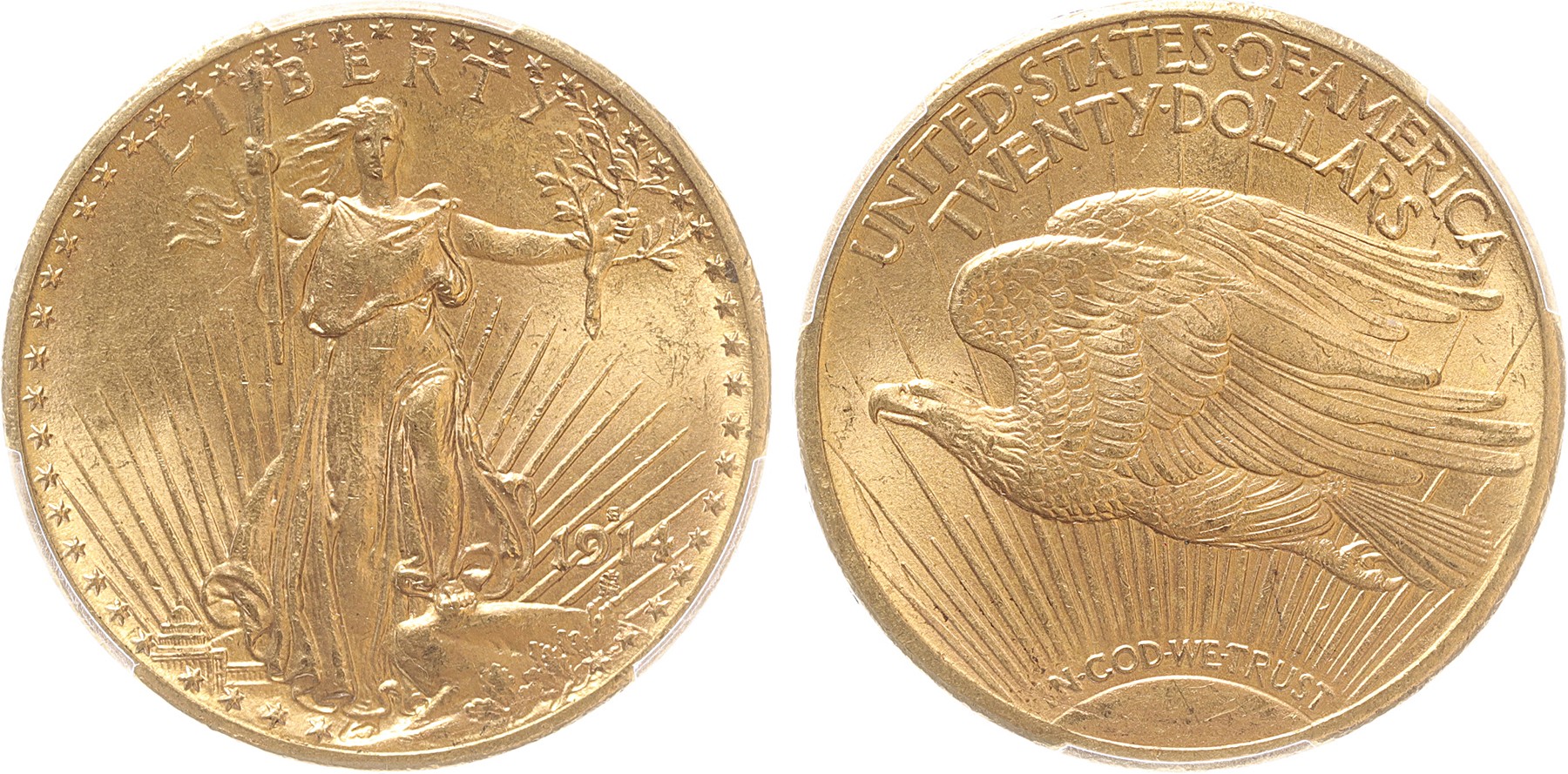 USA. 20 Dollars gold 1914s. PCGS MS 63.