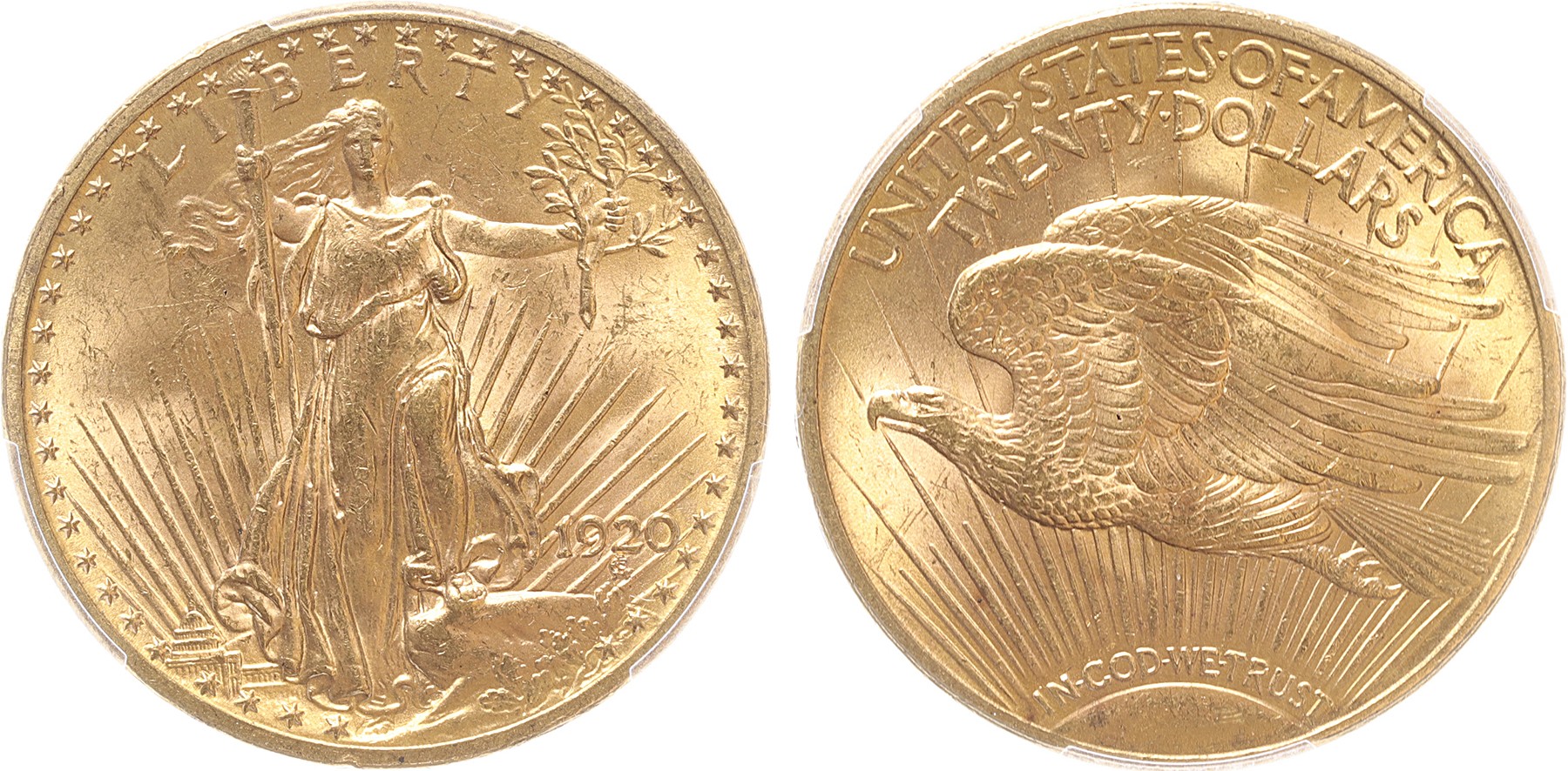 USA. 20 Dollars gold 1920. PCGS MS 63.